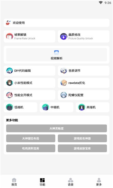 1、智能帧数调节技术可以一键优化游戏画面,在保持流畅度的同时提升画面细节表现力。2、丰富的辅助功能模块让用户可以根据个人喜好自由定制画质参数,打造专属的游戏视觉体验。3、先进的设备分析系统能够快速识别用户机型配置,通过大数据分析提供最优化的画质调整方案。