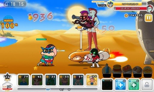 2.角色系统极具特色,小新可以变身为"动感超人"、"功夫小新"和"哈利小新"三种形态,每种形态都拥有独特的技能和战斗风格。玩家需要根据战场情况灵活切换形态,才能应对不同的敌人和挑战。