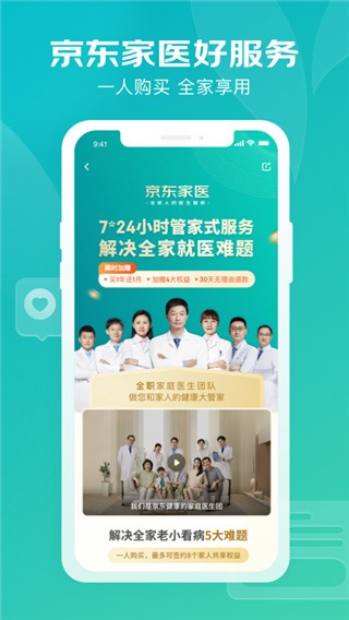 全科室医生团7×24小时随时问诊,一人买全家用,30天免费体验加速领红包。家庭成员可共享账号,实现全家健康管理。
