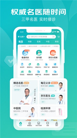 京东大药房权威名医1元问,守护您的健康。平台定期邀请知名专家坐诊,让普通用户也能享受到顶级医疗资源。