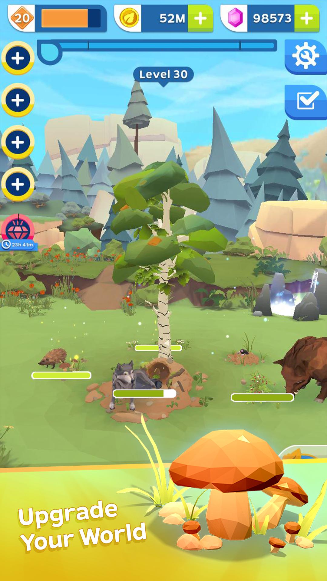 1、通过"生态点"并投资于树木、周围栖息地和动物探访,一个生机勃勃的生物圈。随着生态系统的完善,你将看到更多稀有动物前来造访。