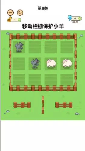 2、核心玩法要求玩家巧妙布置围栏,一旦小羊被狼群包围就会宣告失败,这种紧张感让游戏更具可玩性。