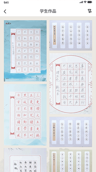 1、携带方便,只要随身携带手机或平板设备,就能随时随地打开课程进行学习,摆脱了传统书法学习对固定场所的限制。2、更新及时,软件内容可以实时更新,相比纸质版课程介绍册更能保证教学内容的时效性和准确性。3、学生作品展示功能强大,支持实时上传和分享书法作品,这种互动功能是传统纸质教材完全无法实现的,大大提升了学习趣味性。