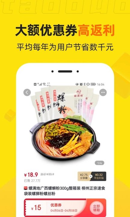 3、创新的社交分享功能,您不仅可以领取优惠券,还能将好物分享给好友,通过分享赚取丰厚佣金,实现省钱赚钱两不误;