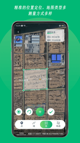 内置辅助测绘工具,便于高精度测绘、测量;该应用配备了专业的测绘算法,能够实现厘米级的测量精度,满足工程测绘的严格要求。支持多种模式的测量,零门槛、高精度,高效率测量;无论是距离测量、面积计算还是高程分析,都能一键完成,操作简单易上手。地图类型多,精度高,满足不同行业人群的测绘需求;提供卫星地图、地形图、街景图等多种视图模式,适应各种工作场景。精准的位置定位,采用GPS+网络模式,可以快速确定位置;即使在信号较弱的区域,也能保持稳定的定位性能。把测量搬到手机上,让测量变得更加便捷,用技术提高效率;通过智能化的数据处理和云端同步功能,实现测量数据的实时共享和协作。