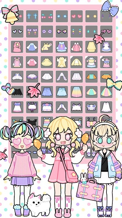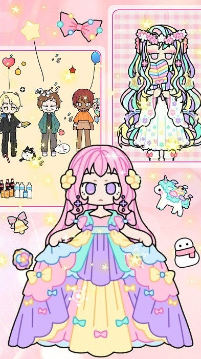 游戏支持与好友互动分享,你可以邀请朋友一起参与装扮挑战,共同享受时尚搭配的乐趣!操作简单便捷,所有装饰项目都可以通过拖放的方式在屏幕上自由移动,让你轻松完成造型设计。游戏中准备了五颜六色的服装选择,以及各种精心设计的配饰,满足你对时尚的所有想象。无论是少女还是少年角色,都能在这里找到心仪的服饰,快去挑选漂亮的服装打造专属造型吧!