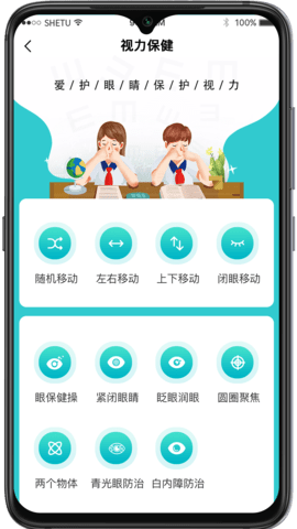 【视觉训练】视力检测、色盲测试、散光测试、颜色敏感度功能,定期进行视觉测试和训练;训练项目经过专业设计,既有趣味性又具备科学依据,能有效提升视觉功能。