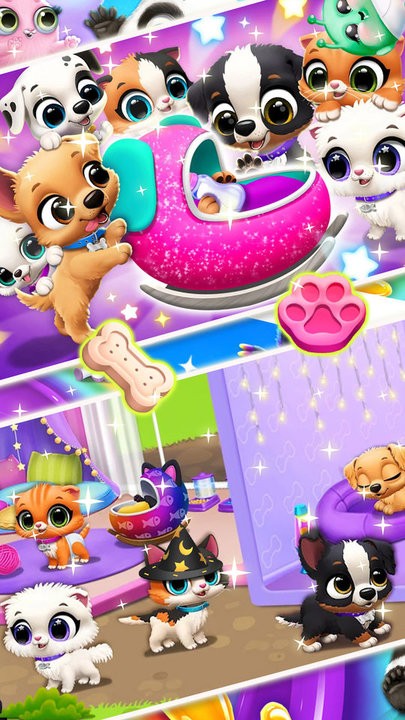 2、为可爱的小狗和猫咪洗澡!精心设计的宠物护理系统,让你可以体验真实的宠物美容过程,使用各种洗浴用品为它们打造完美造型。