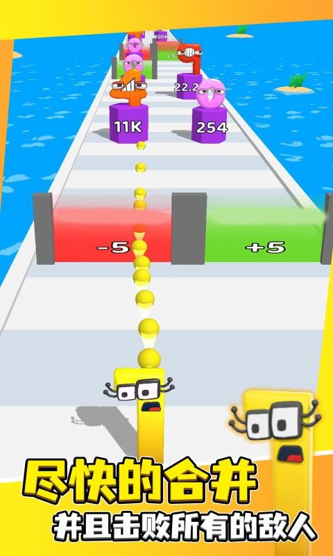 《融合数字人》是一款以数字为主题的创新跑酷游戏,玩家将操控数字角色在地图中冲刺闯关,通过收集沿途的数字来壮大自己的队伍。游戏巧妙地将数学元素融入传统跑酷玩法,让玩家在享受速度与激情的同时,还能体验到独特的数字组合乐趣。随着关卡的推进,挑战难度会逐步提升,但轻松愉悦的背景音乐和简单易上手的操作,让各年龄段的玩家都能沉浸在这段奇妙的数字冒险之旅中。