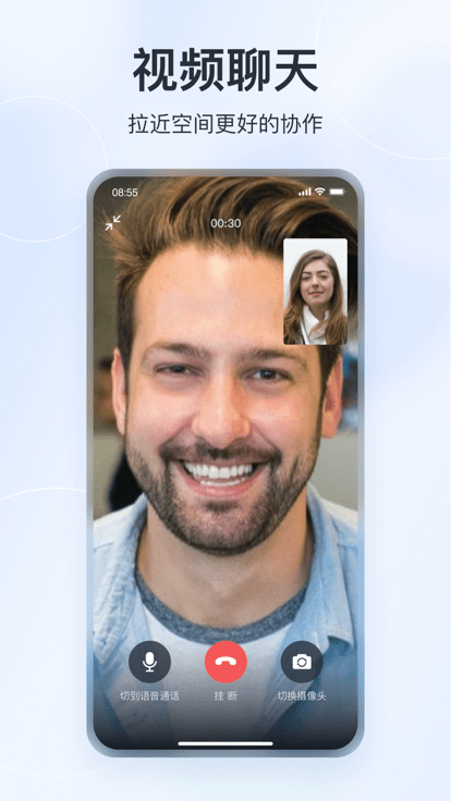 ·感官:语音、视频,听觉视觉参与互动,更细腻更便捷。高清音视频通话质量,支持多人同时在线会议。