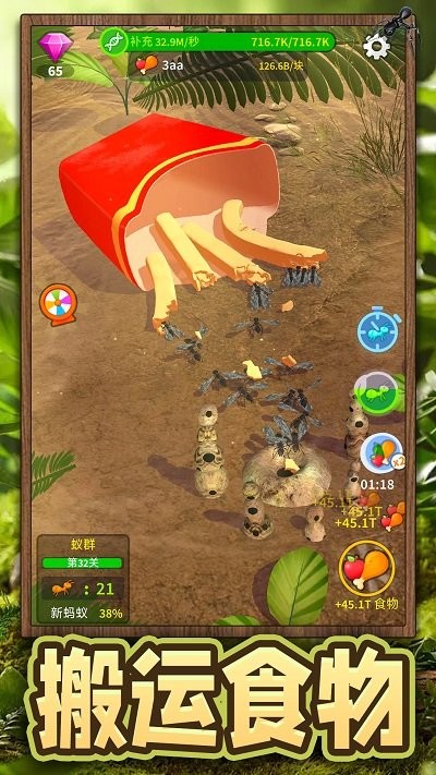 --探索收集:派遣工蚁探索未知区域,收集食物资源,发现隐藏的宝藏和特殊道具。