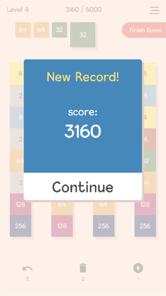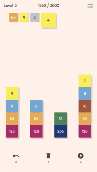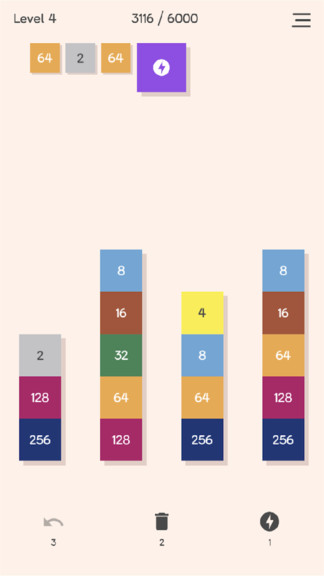 游戏操作非常简单直观:只需点击屏幕即可放置方块;当两个相同数字的方块相邻时,它们会自动合并成一个更高数值的方块;通过不断合并方块获得足够的分数就能顺利通关;连续进行多次合并还能获得额外的分数加成;每次升级时,系统会自动重新排列一列方块,为玩家创造新的合并机会。游戏还设置了多种特殊机制:当玩家成功升级时,可以获得一次免费的方块重排机会;游戏节奏明快,玩法简单却充满趣味性,让人欲罢不能;随着游戏进程的推进,玩家需要不断挑战更高的分数目标,体验越来越丰富的游戏内容。