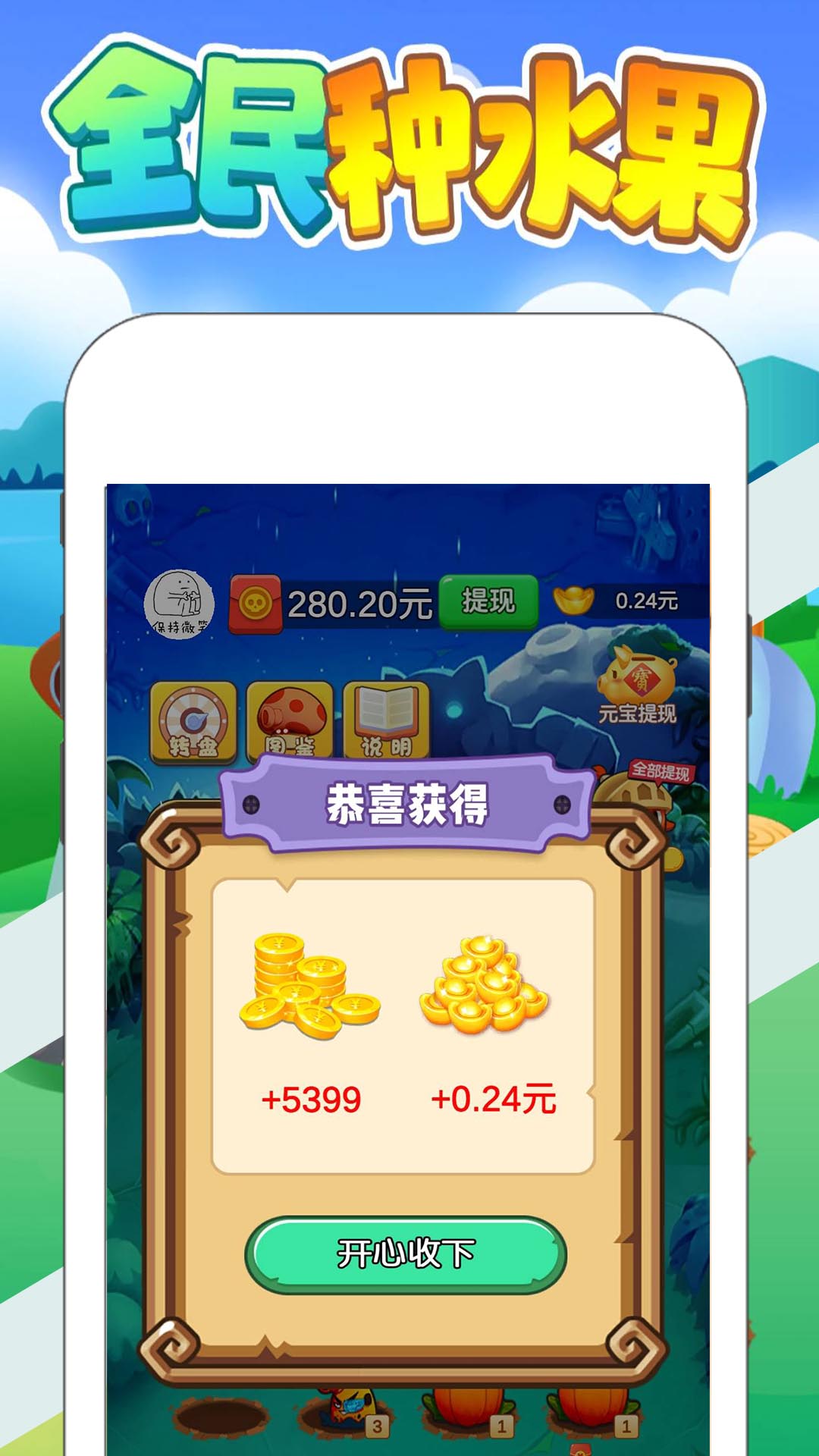 全民种水果将休闲娱乐与红包奖励完美结合,让您在轻松愉快的游戏过程中收获实实在在的收益。无论是想打发时间,还是想赚点零花钱,这款游戏都是您的不二之选。现在就加入全民种水果的大家庭,开启您的合成赚钱之旅吧!
