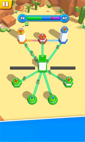 塔楼争夺战是一款极具趣味性的竞技对抗游戏,完美融合了策略与休闲元素。游戏以色彩鲜明的卡通画风呈现,为玩家带来轻松愉悦的视觉体验。在这里,你将面对层出不穷的挑战关卡,需要运用各种战术手段摧毁敌方建筑,逐步扩大自己的领地。游戏节奏明快,玩法解压,无论是策略游戏老手还是休闲玩家,都能快速上手并找到属于自己的乐趣。随着关卡的推进,游戏难度会逐步提升,考验玩家的即时决策能力和长远战略规划。