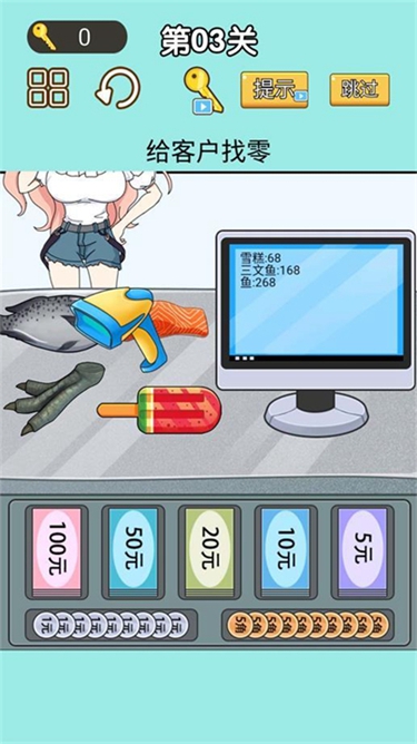 根据顾客付款金额计算找零,确保迅速准确退还零钱,感受心算带来的乐趣与成就感。游戏设置了多种支付方式,包括现金、信用卡等,玩家需要根据不同支付方式调整找零策略。