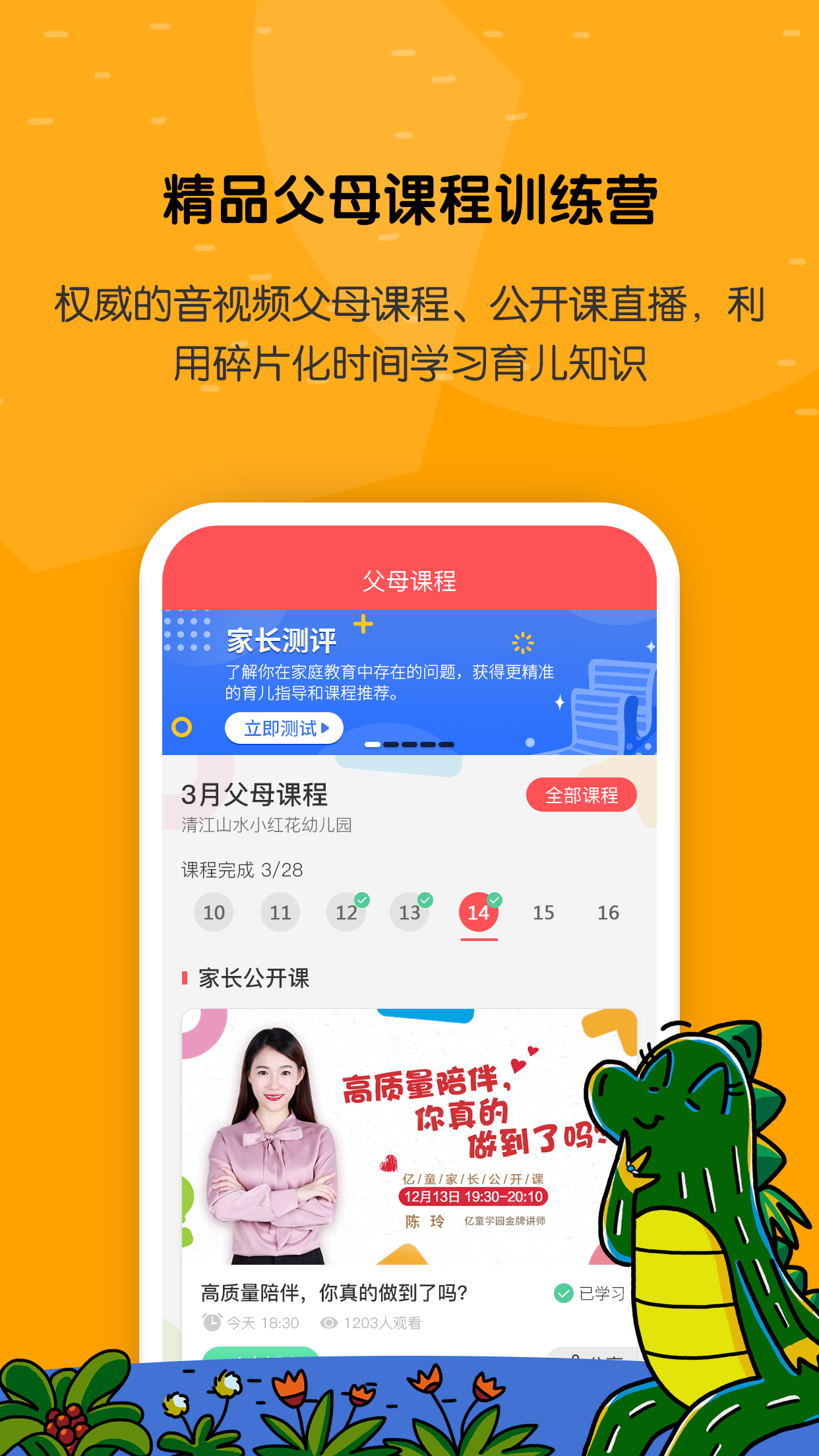 1、父母课程新增【热门课程】专区,采用专题化推荐形式,让家长能够更系统地学习育儿知识;2、园所同步课程全面免费开放,所有用户现在都可以免费学习优质的同步课程资源。