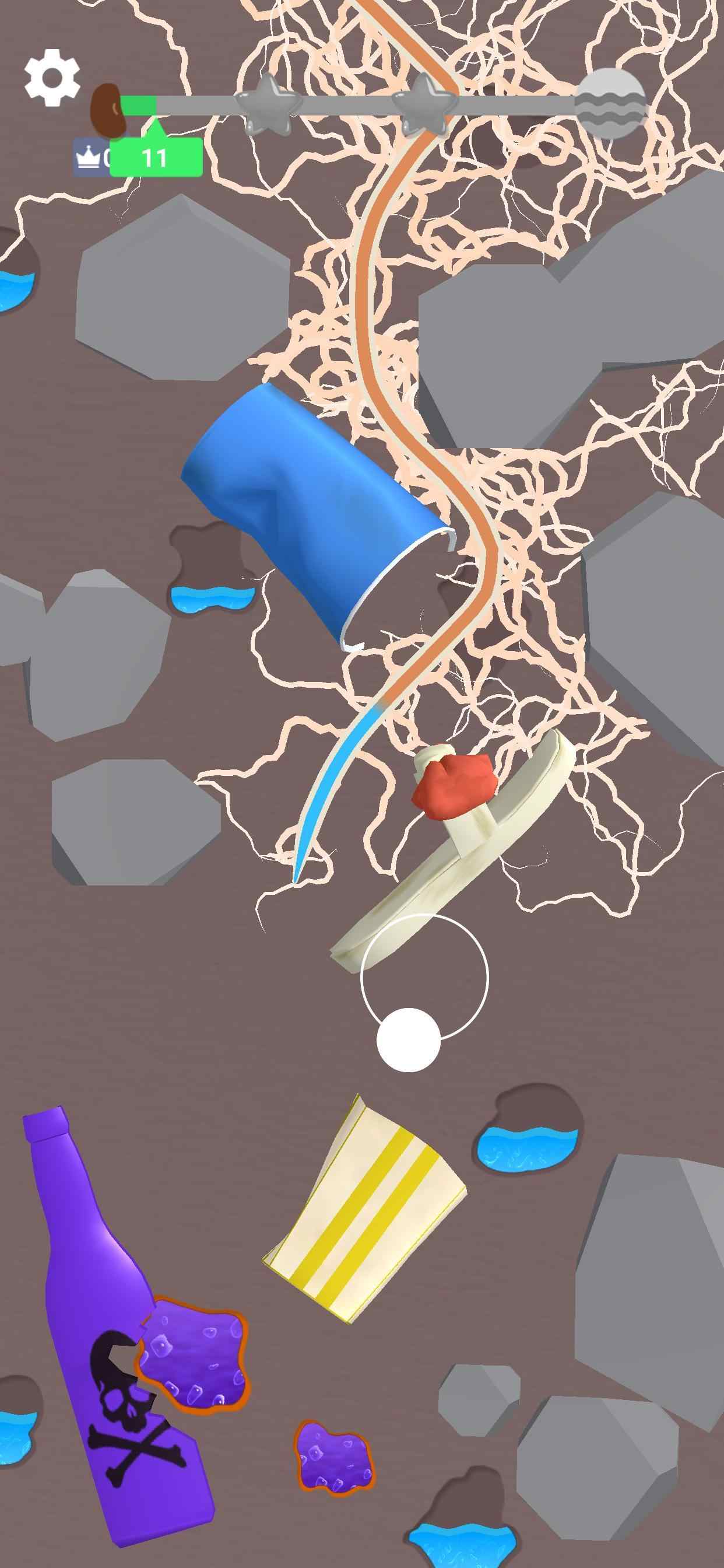 2、操作方式非常简单直观,玩家只需通过触屏滑动来控制根系生长方向,引导它们向土壤深处延伸寻找水源,这种轻松的操作方式适合各个年龄段的玩家。