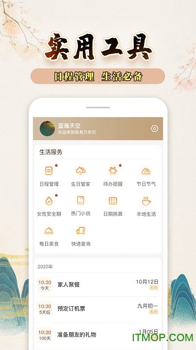 集年历、农历、老黄历、天气、节日、节气等众多功能于一体,为用户提供全方位的参考信息;轻松查询吉日,节日、节气、天气、宜忌等信息尽在其中,让传统黄历查询变得简单便捷;强大的日程管理功能帮助用户高效规划时间,让生活和工作更加井然有序。
