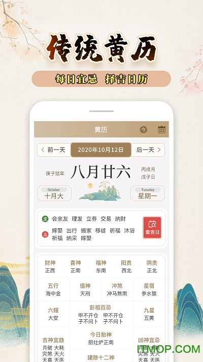 精心设计的黄历界面,详细展示每日宜忌信息,为用户提供传统择吉参考,让重要日子选择更有依据。
