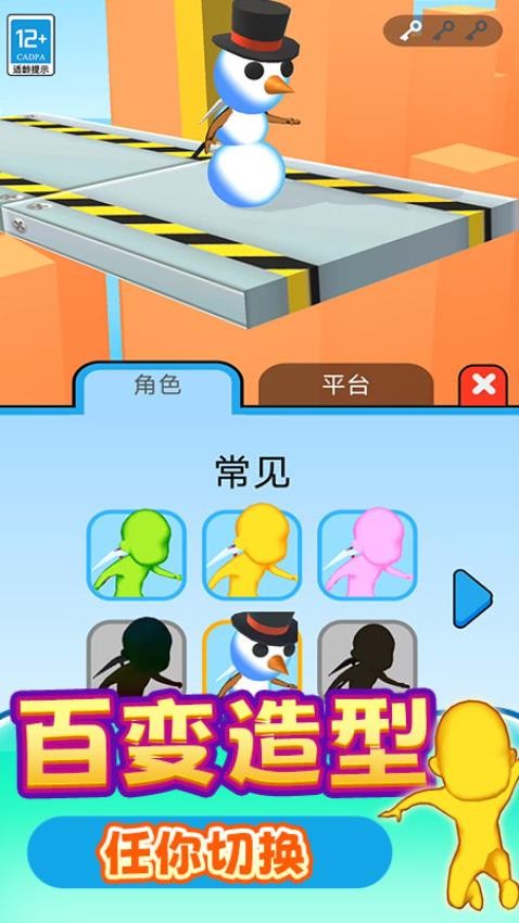 游戏提供了多种个性鲜明的角色造型供玩家选择,包括可爱的雪人、神秘的黑色忍者、绚丽的彩虹人等。每个角色都拥有独特的视觉效果,玩家可以根据自己的喜好进行选择,为冒险之旅增添更多乐趣。