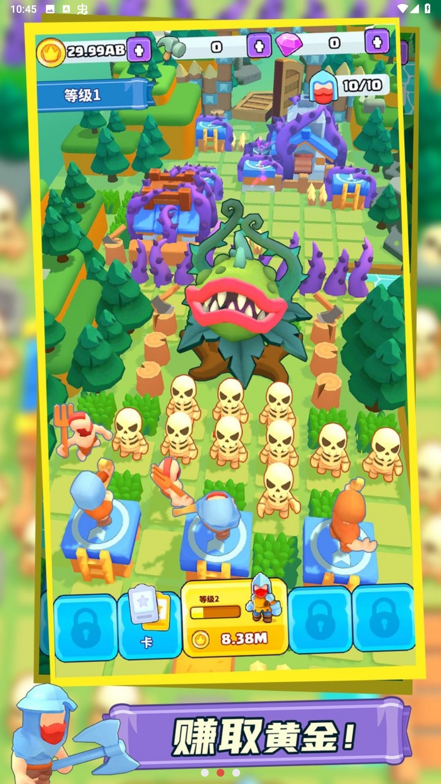 在玩家的期间,村庄中的金矿也会不断地产生金币。玩家需要合理分配这些资源,既要保证防御建设,又要及时补充兵力。敌人也会包含多种类型,有骷髅杂兵也有高级的精英怪。每种敌人都有特定的弱点,玩家需要针对性地部署克制兵种。采用了俯瞰式的视角,让玩家更容易观察到战场的全貌。游戏还支持离线挂机收益,即使不在线也能获得基础资源。