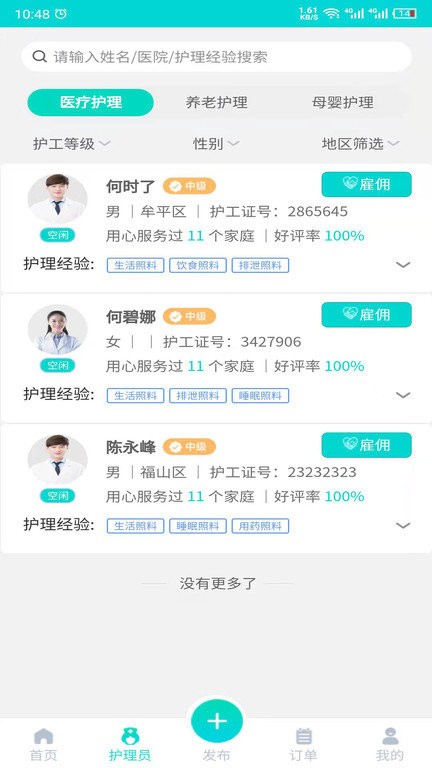 星级制度:每位护工都有详细的评分和评价,服务质量一目了然;