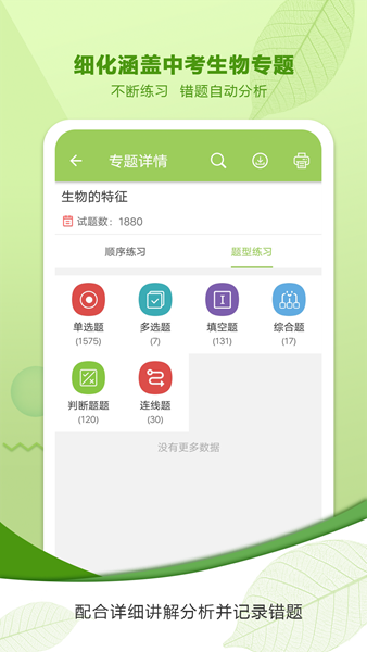 专题:细化涵盖中考生物科目的专题练习题目,每一道题目都有详细的讲解分析。专题内容紧跟中考命题趋势,针对易错点和难点进行重点突破,帮助学生提升解题能力。
