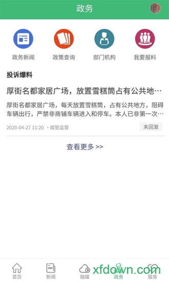 政务新闻、政策查询、部门机构、我要爆料、投诉爆料。这些功能让用户能够及时了解政府政策,同时也可以通过爆料功能参与社会监督。