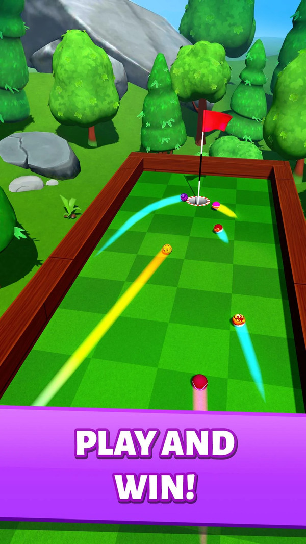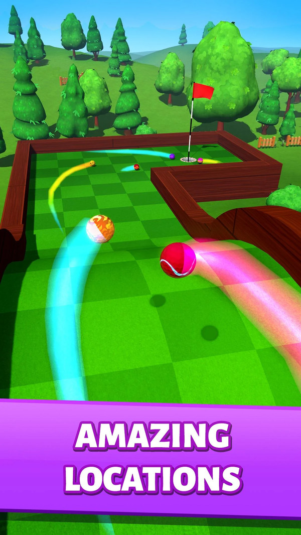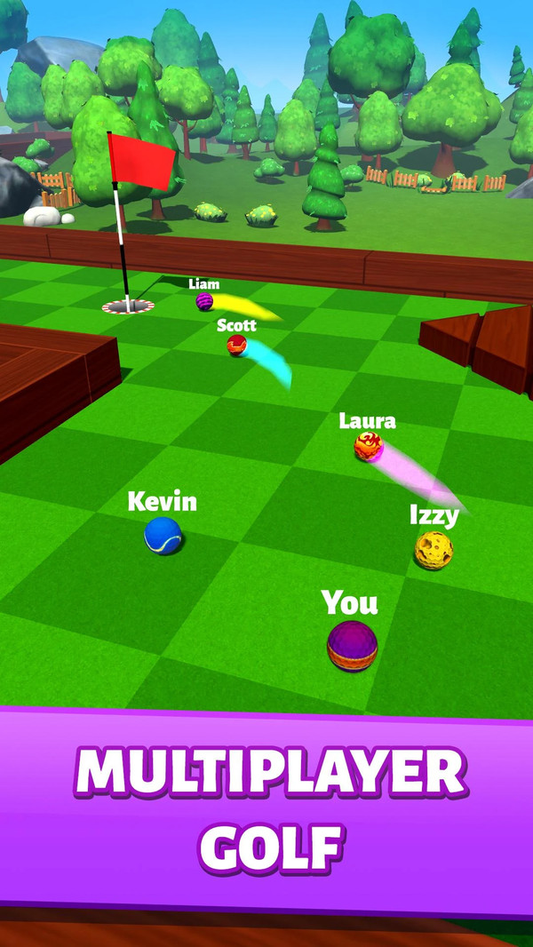 在迷你高尔夫球场上与其他玩家作战。实时匹配系统让玩家可以随时找到对手,全球排行榜功能激励玩家不断提升自己的技术水平。