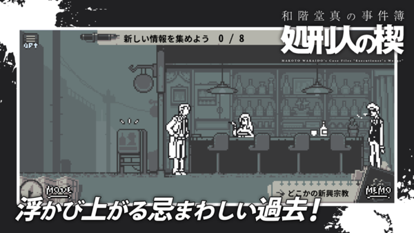 不愿谈及的过去,调查所有相关场所与人物,找到全部的情报就能开始你的推理。游戏特别设计了记忆碎片系统,通过收集线索可解锁角色过往故事。游戏的流程并不长,处刑人之楔是案件其中之一,相信你能很快解决;但多结局设定鼓励玩家反复探索,每个选择都可能影响最终审判结果。这是一款本格的推理,喜欢的玩家一定不要错过,诡异的凶案现场;美术风格采用暗色调渲染,完美烘托出悬疑氛围,配合精心制作的音效更添沉浸感。