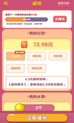 将休闲娱乐与实用价值完美结合,在享受游戏乐趣的同时还能赚取零花钱。红包提现门槛低,小额奖励也能快速到账。游戏内置的防沉迷系统,帮助玩家合理安排游戏时间。真实可靠的奖励机制,让每一分努力都有回报。
