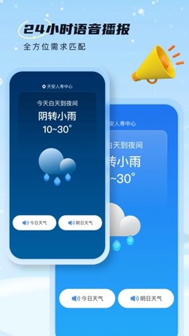 强大的语音播报功能让我们在做家务的同时也能知道天气变化。清晰流畅的语音播报解放了用户的双手和眼睛,特别适合开车、做饭等不方便查看手机的场景使用。
