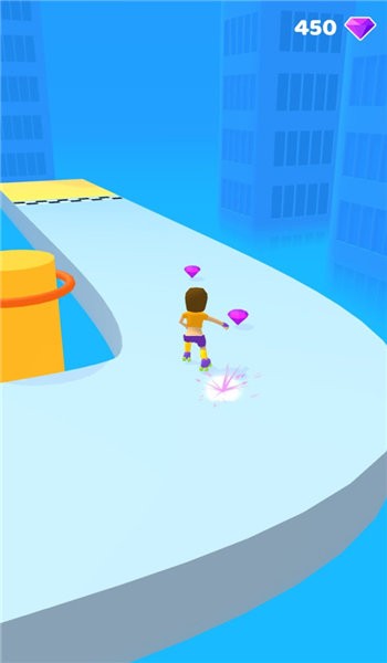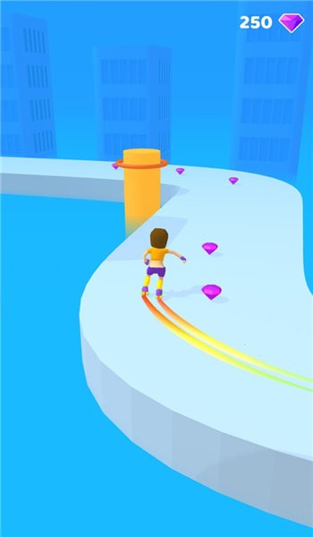 游戏操作兼具易上手与难精通的特点,直线加速只需保持方向稳定,但遇到连续S弯时就需要精准把控入弯时机。独创的绳索辅助系统让过弯更具策略性,玩家可以选择保守的内线过弯,或是冒险使用外线立柱完成极限超车。收集的钻石不仅能解锁新装备,还能升级现有轮滑鞋的各项性能参数。随着角色能力的提升,玩家可以尝试更具挑战性的高阶技巧,比如在高速滑行中完成连续变向,或是利用斜坡实现空中特技。