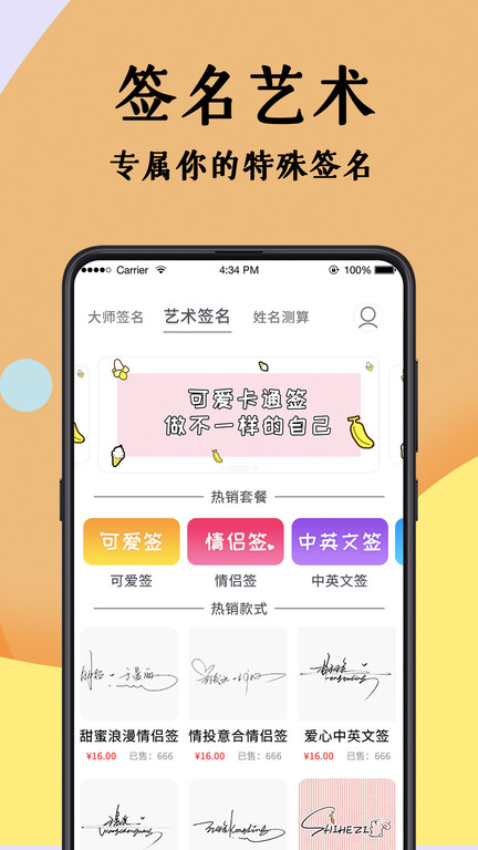 利用专业的艺术字体合成技术,一次提供近百种时尚艺术签名服务。