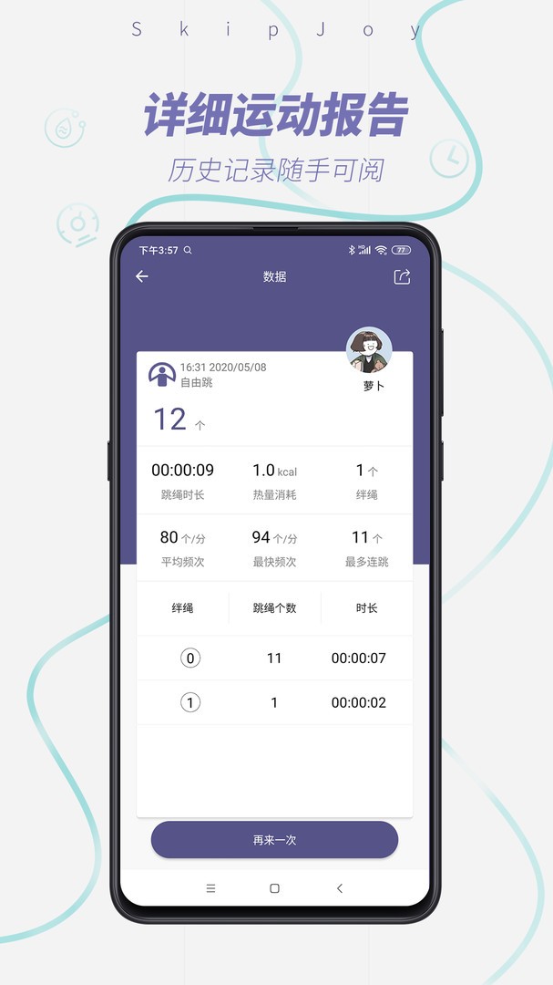 跳绳统计数据云端储存,可随时随地同步至App:采用多重加密技术保障数据安全,支持多设备间无缝同步。即使更换手机,历史记录也能完整保留。
