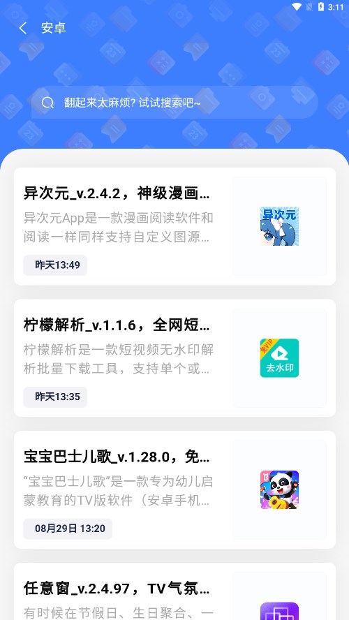 在互联网时代,许多优质的软件分享平台由于备案问题或运营时间较短等原因,往往难以被主流搜索引擎收录,导致用户难以发现这些宝贵资源。正是为了解决这一痛点,搜软鸭app应运而生。我们的平台整合了十余个业内知名的软件分享博客资源,通过智能聚合技术,将这些优质内容汇聚一处。无论您寻找专业工具还是娱乐软件,都能在这里获得更精准、更全面的搜索结果,彻底告别传统搜索方式带来的资源遗漏问题。