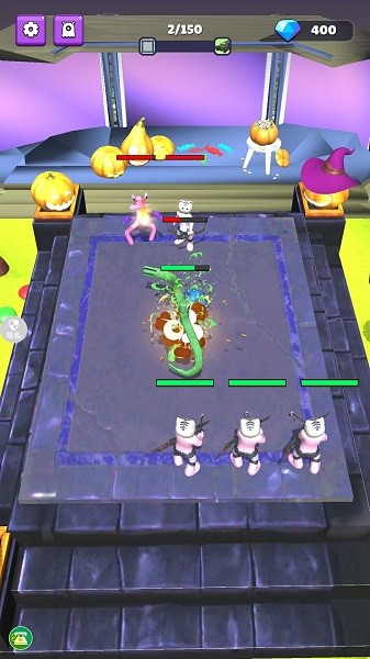 合到停不下来最吸引人的地方在于其独特的战斗系统。玩家需要控制不同颜色的彩虹英雄与敌人展开激烈对决,每种颜色的英雄都拥有独特的技能和战斗风格。游戏中的彩虹朋友造型设计充满喜感,战斗场景采用卡通风格,配合细致的血量描绘系统,让玩家能够直观地掌握战况。游戏还设置了海量关卡挑战,玩家需要在规定时间内击败指定数量的敌人,完成挑战后可以获得丰厚的钻石奖励,这些奖励可以用来解锁更多强力装备和道具。