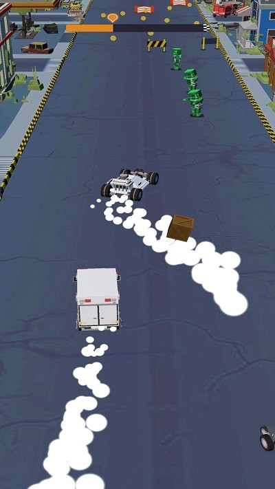 赛道上有很多障碍,玩家不能一直高速行驶,在遇到障碍物时必须及时减速躲避,同时还要注意随时可能出现的僵尸群,合理使用氮气加速是关键。