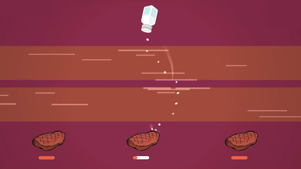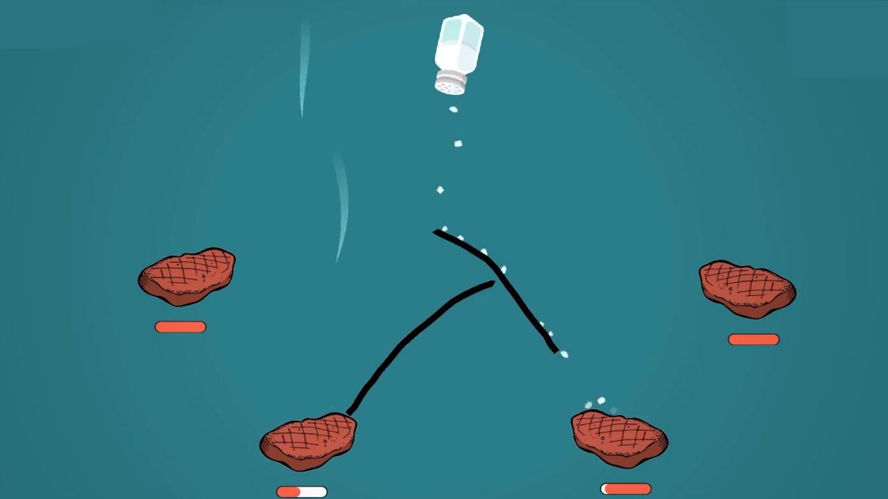 游戏最大的特色就是创新的撒盐玩法,黑暗料理还是美味牛排全凭你的手艺!用你的聪明才智,将盐撒向牛排吧。游戏还特别设计了慢动作特效,让玩家可以欣赏盐粒在空中划出的优美弧线。多达20种不同产地的特色食盐等你收集,每种盐都会给牛排带来独特风味。定期更新的节日活动和限时挑战,让游戏始终保持新鲜感。