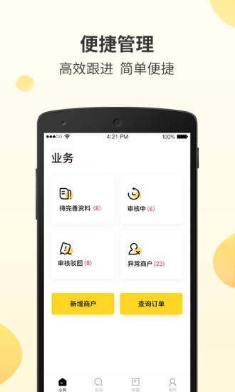 可以在线进行商户审核,让客户在线管理审核状态,提高审核效率;