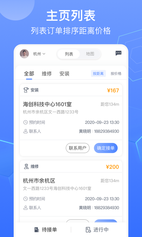 基于LBS定位技术,智能推荐周边3公里内的优质订单,节省师傅的交通时间和成本。系统会根据师傅的服务类型、评价等级等因素进行精准匹配,确保每个订单都符合师傅的专业特长。