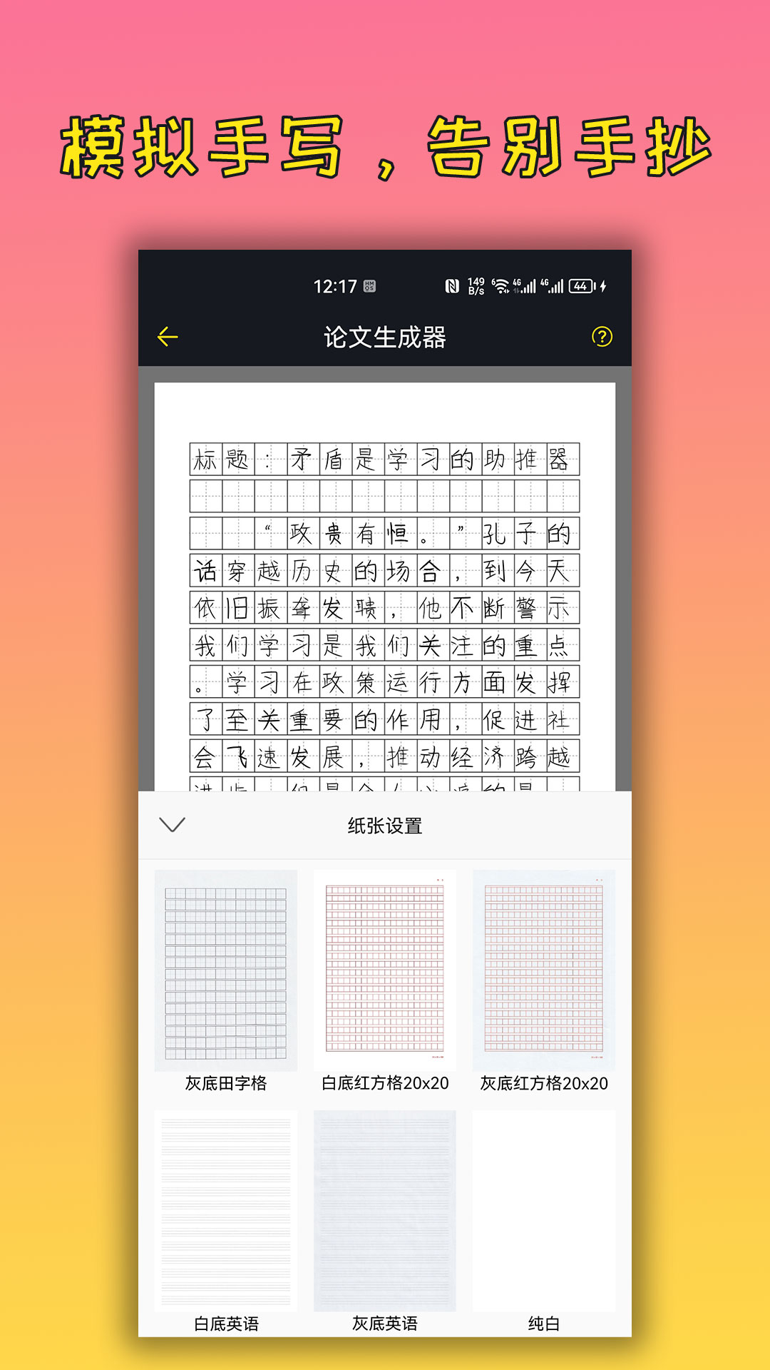 手写功能:突破性地实现了笔迹压力感应模拟,能还原真实书写时的笔墨浓淡变化。新增的"书法大师"模式包含颜体、瘦金体等12种专业书法字体,配合可调节的纸张纹理特效,能制作出足以乱真的手写作品。支持导出高清图片或PDF格式,满足不同场景的使用需求。