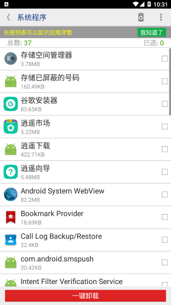 『自动分类』:自动将手机应用分为系统应用和用户应用两大类,并根据使用频率给出卸载建议。清晰的分类界面让管理更加高效,避免误删重要系统组件。