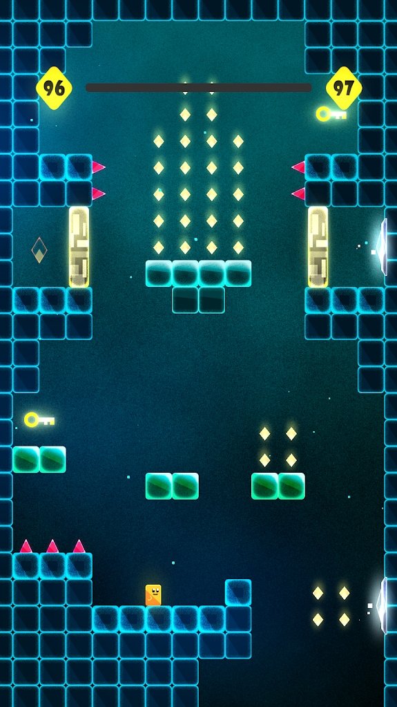 不断突破各种困难,钥匙,收集星星,在不断更新的关卡中通过所有的关卡。收集三颗隐藏星星可解锁专家模式,该模式下障碍物移动速度提升30%。游戏内还设置了50个特殊成就,完成它们能获得专属称号和装饰品。