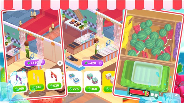 游戏提供了丰富多彩的经营体验,玩家可以在不同场景中探索发现。除了基础的超市经营外,你还能尝试制作美味甜品、采购新鲜水果等特色玩法,让经营过程充满惊喜。游戏特别设计了收银员模拟玩法,考验你的反应速度和计算能力,确保为每位顾客提供完美的结账服务。此外,你还可以体验超市中的各种职业,从理货员到店长,全方位感受超市运营的每个环节。