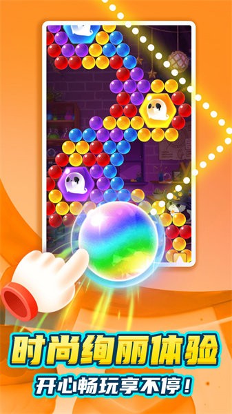 《快乐射手宝贝》采用经典的泡泡龙射击玩法,通过发射彩色泡泡进行消除,带来轻松解压的游戏体验。游戏包含1000个精心设计的关卡,每个关卡都有独特的泡泡排列和挑战目标。玩家可以收集各种特效道具,如炸弹泡泡、彩虹泡泡等,帮助完成更具挑战性的关卡。此外,游戏还加入了创新的秘密基地系统,玩家可以收集资源,打造个性化的梦幻家园,体验经营养成的乐趣。