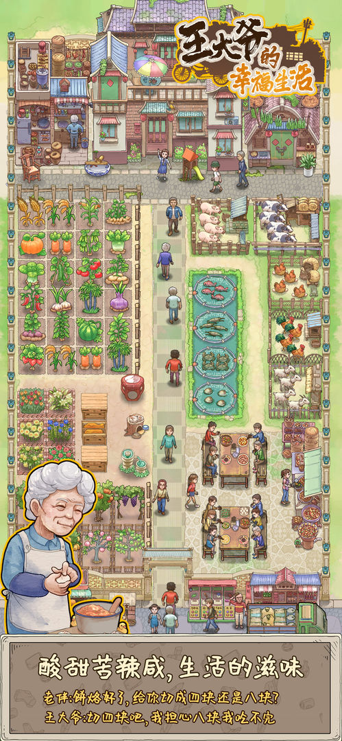 王大爷的幸福生活是一款极具趣味性的模拟经营游戏,故事围绕一个充满烟火气的农家小院展开。玩家可以在这里体验日出而作、日落而息的田园生活,感受最纯粹的快乐。游戏中的每一个细节都经过精心设计,从晨光熹微到夕阳西下,都能让你感受到时光的静谧与美好。