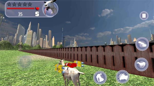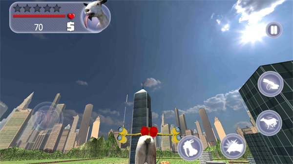 游戏开始前需要先完成下载安装,首次启动时会要求玩家阅读并同意用户隐私政策。建议使用vivo账号登录以获得更好的游戏体验,登录完成后稍等片刻即可进入主界面。游戏提供了多种山羊角色可供选择,初始会赠送基础款山羊,而更强大的特殊山羊则需要通过游戏内金币解锁。选定心仪的山羊后,游戏采用直观的双摇杆操作模式:左侧虚拟摇杆控制山羊移动方向,右侧按钮则负责发动攻击、加速奔跑等动作。最令人惊喜的是,某些特殊山羊还具备飞行能力,只需点击飞行按钮就能让山羊腾空而起,体验俯瞰城市的独特视角。