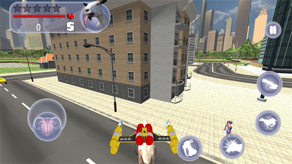 游戏世界完全开放,玩家可以随心所欲地探索每个角落。场景中的NPC都拥有真实的物理反馈,无论是行人、警察还是动物,都能与山羊产生有趣的互动。通过简单的触屏操作,玩家可以让山羊做出各种夸张动作,比如用头撞击、用角顶飞敌人等。随着游戏进程,玩家还能解锁更多恶搞技能,让破坏行动变得更加疯狂有趣。