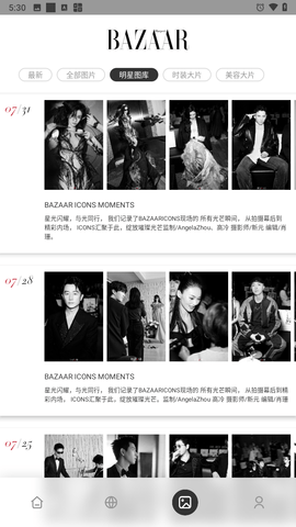 本期刊致力于打造随时可及的高级时尚阅读体验,让用户在任何时间、任何地点都能享受时尚的魅力。文字故事、视觉大片之外,融汇视频、音频、互动游戏等多元化形式,令杂志阅读乐趣倍增,带来前所未有的沉浸式体验。《时尚芭莎》电子版突破传统界限,实现“视觉即购买”的购物新体验,轻松将心仪之物加入收藏,让时尚触手可及。点击APP首页右上角的“星标”,即可接入《时尚芭莎》明星专属电子刊,解锁独家内容。涵盖当红明星、热议影片、人气剧集及综艺节目,以创新策划提供沉浸式互动,让您与偶像更近一步。不仅如此,APP每日更新时尚动态,不定期举办福利活动,惊喜连连,乐享不停,让时尚生活更加丰富多彩。